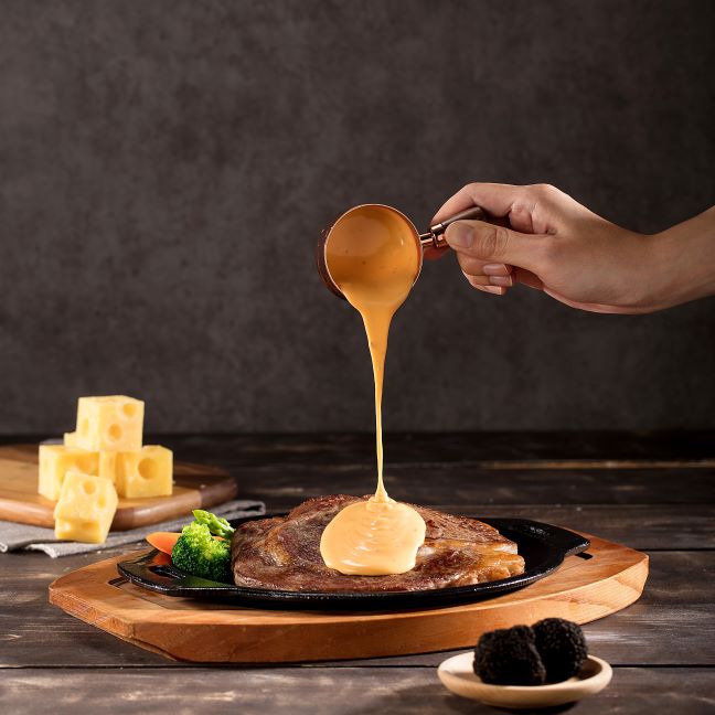 受限於切達乳酪多為塊狀與絲狀,操作與加工都極為不便,特此主廚樂推